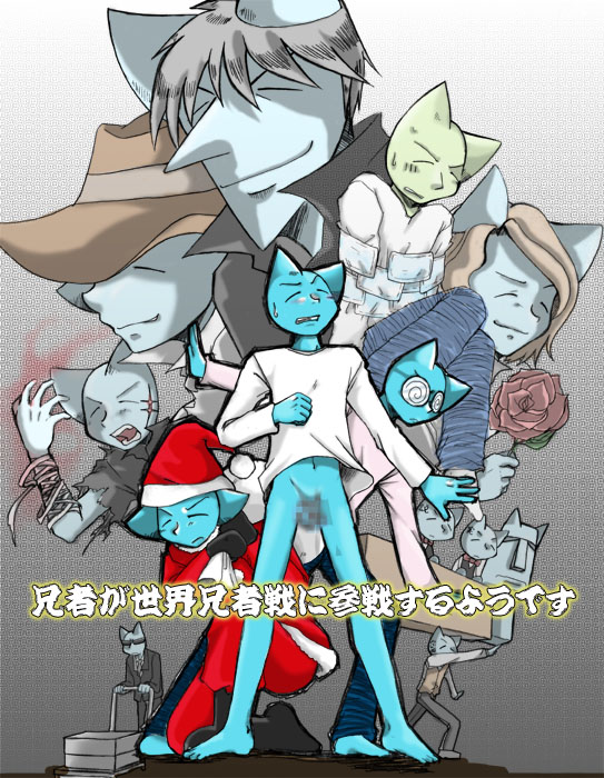 次こそは共に参加しようぜ同志ーー!! 私も今回一番盛り上がってた時期はスルーしてしまったのが寂しかった… なんで銀魂映画とか見にいってたんだまったく俺のバクチダンサー!! わーい!是非コメントさせてくれ!超楽しみにしてる! 気に入ってもらえて嬉しいですwww 股間にモザイクはいれるべきか作品的にモロチンにすべきか、 モザるならその大きさは…??と頭を悩ませた甲斐がありました。 わかりづらいかもしれないけど、髪のあるイケメン兄者は 狩野英考がモデルなんだよ。 私のなかでイケメンといったらあれだよ。 資料にと画像検索してずらりと並んだ狩野のドヤ顔にはさすがにムカついたよ。 役立ててもらえたなら幸い!ありがとぉー!